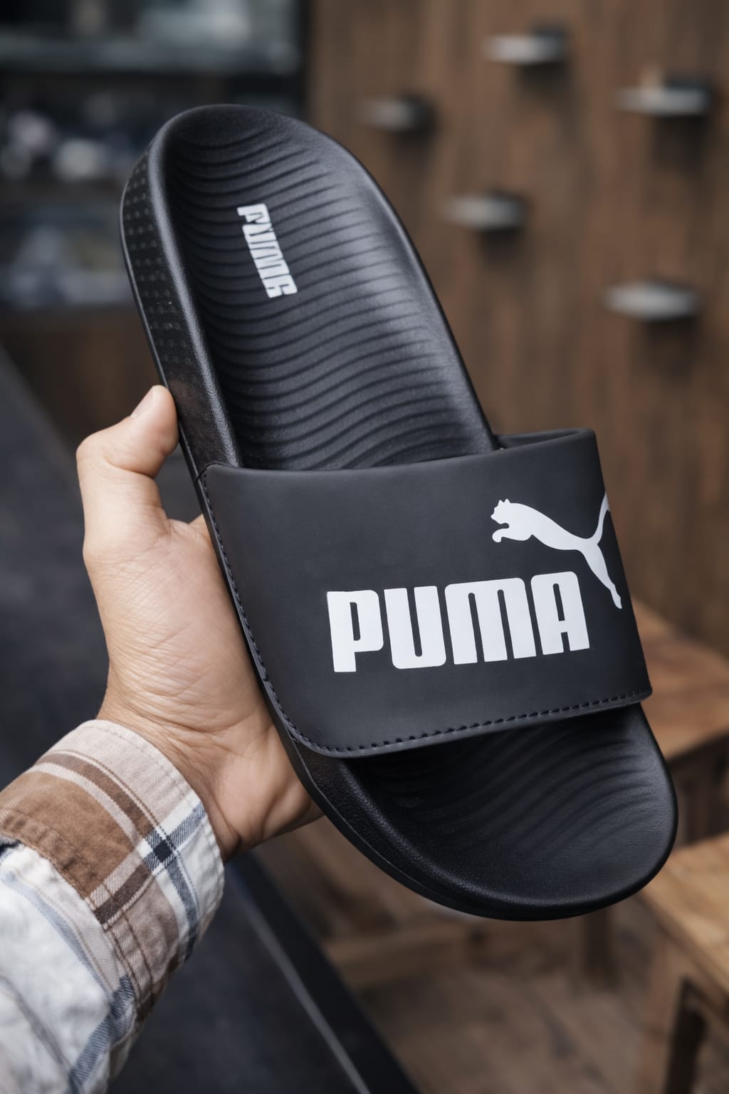 Comfortable Puma full black flip flops with lightweight sole and stylish design. Perfect for daily casual wear.